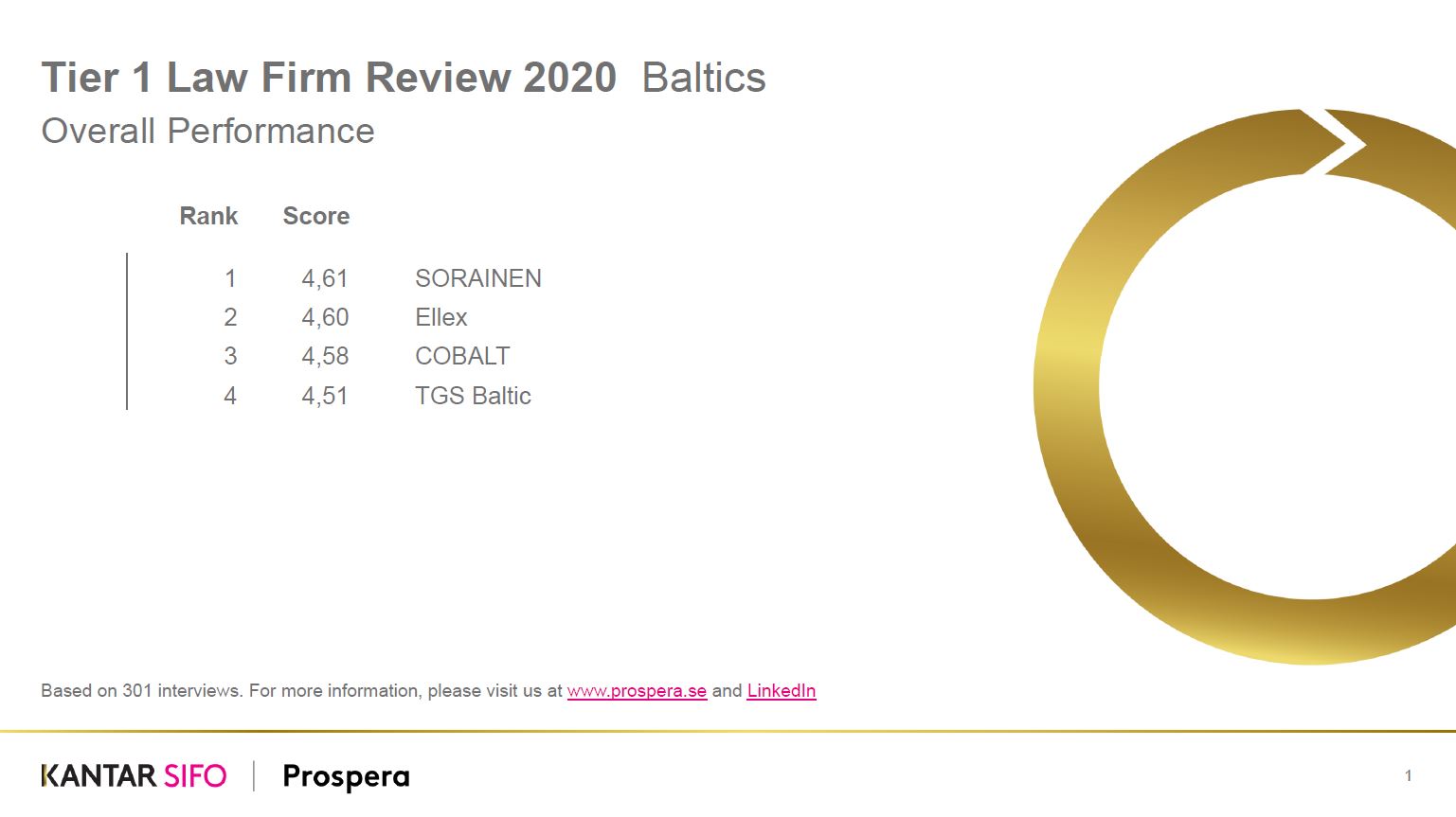 Sorainen tõusis Baltimaade suurimaid advokaadibüroosid hindavas Prospera kliendiuuringus esikohale nii Eestis kui ka Baltimaades.