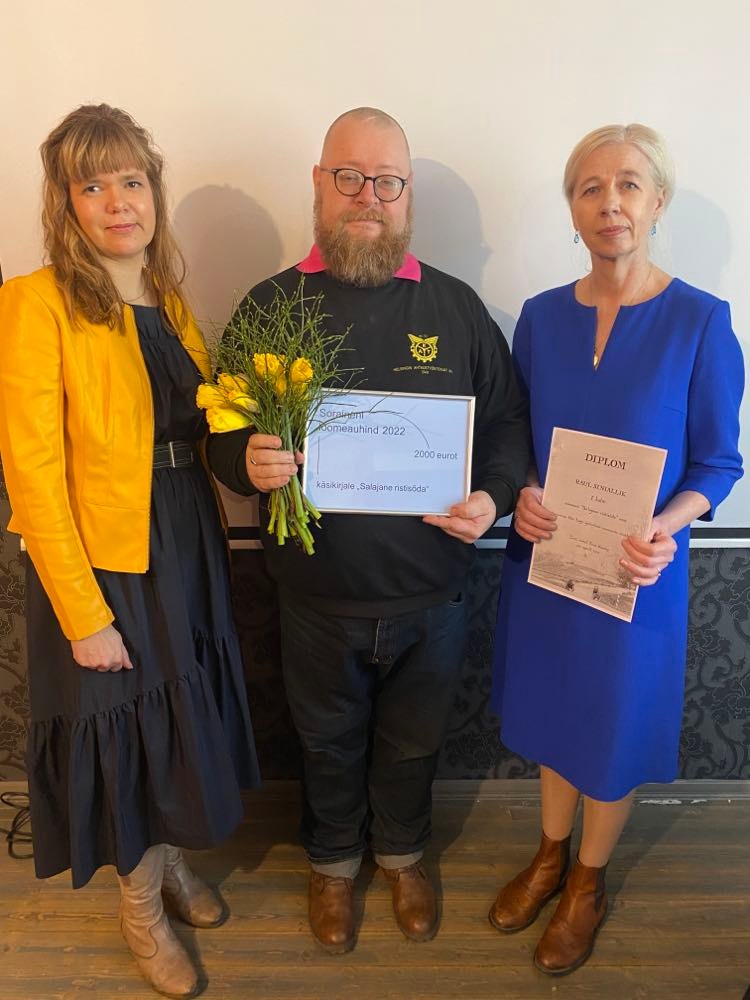 Soraineni turundus- ja kommunikatsioonijuht Iris Magnus, Soraineni eripreemia pälvinud käsikirja autor Raul Siniallik ja kirjastuse Hea Lugu tegevjuht Tiina Kaalep