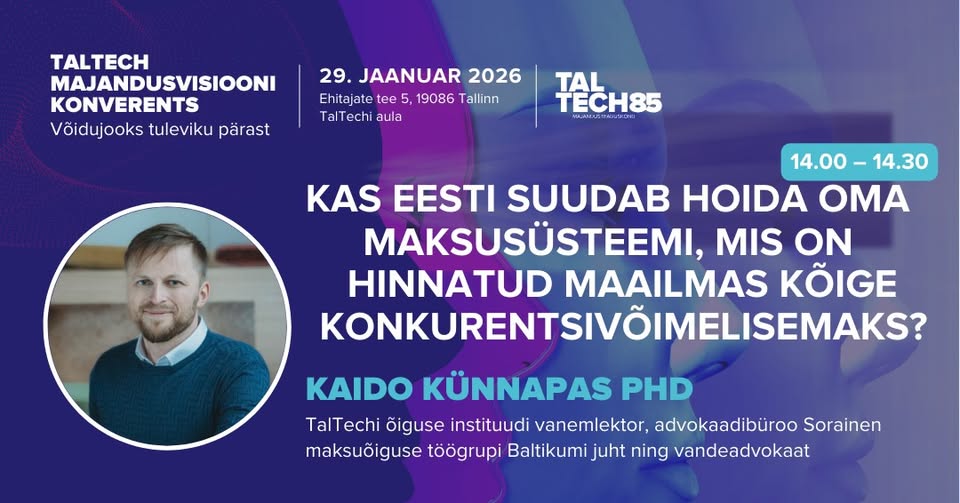 Tax Foundation on hinnanud Eesti maksusüsteemi kõige konkurentsivõimelisemaks lahenduseks kogu maailmas. Seda eelkõige selle lihtsuse ja stabiilsuse tõttu. Kuhu on meie maksusüsteemi konkurentsivõime suundumas ning mida teha, et seda kohta säilitada maksujuristi seisukohalt? Sest võidujooksu tempo on nii maailmas kui ka Baltikumis läinud meistriliiga tasemele. Mida märkavad maksunõustajad igapäevatöös, abistades piiriülest ettevõtlust? Kuidas mõjutab teadmispõhise majanduse edendamine maksustamist ja vastupidi?