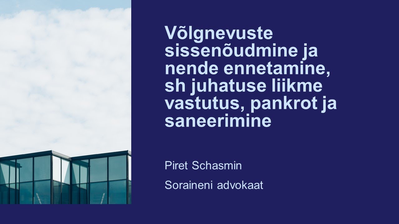 Võlgnevuste sissenõudmine ja nende ennetamine, sh juhatuse liikme vastutus, pankrot ja saneerimine Video / 12. mai 2020 / Piret Schasmin