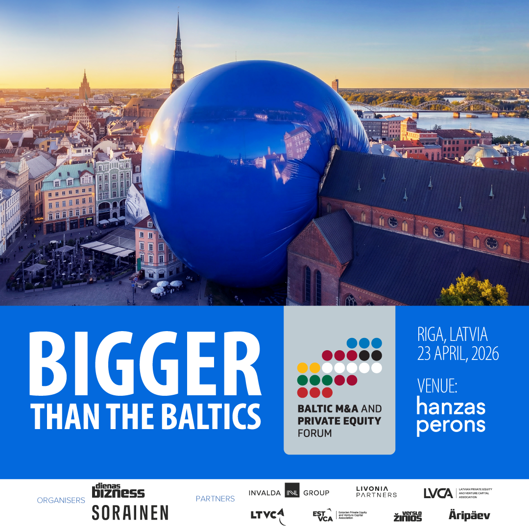 Join us at the Baltic M&A and Private Equity Forum 2026: Bigger than the Baltics to be held on 23 April at Hanzas perons, Riga, Latvia!