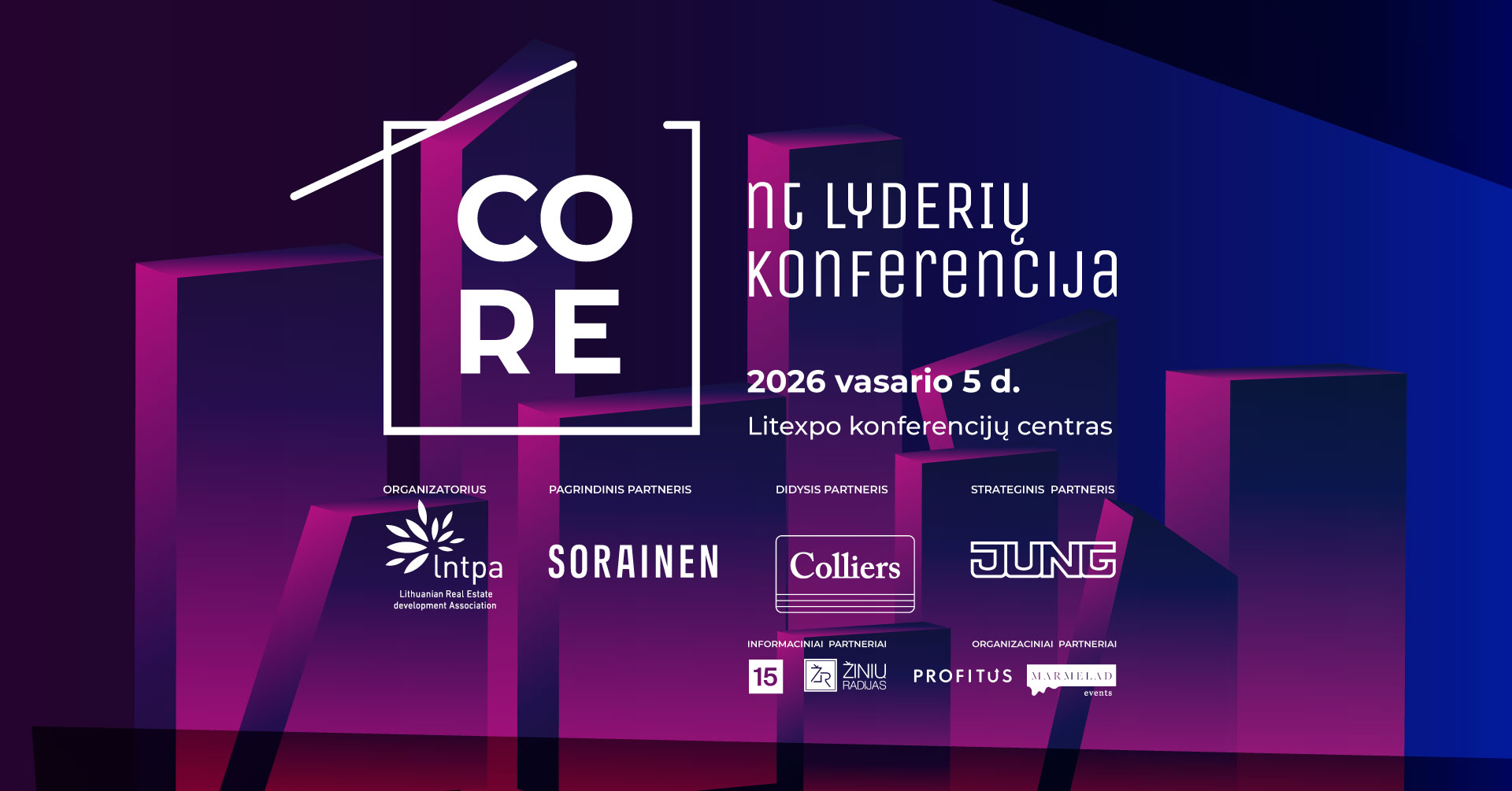 Kartu su Lietuvos nekilnojamojo turto plėtros asociacija kviečiame dalyvauti didžiausioje metinėje nekilnojamojo turto lyderių konferencijoje „CORE 2026”.