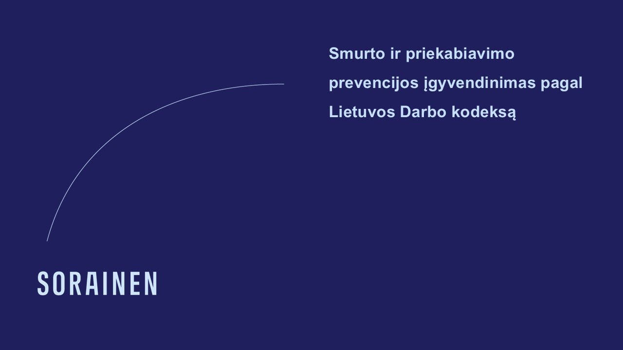 Teisės firmos „Sorainen“ privalomų smurto ir priekabiavimo prevencijos mokymų tikslas – suteikti žinių, padedančių pastebėti galimas netinkamo elgesio situacijas, suprasti, kokių veiksmų imtis, jei su jomis susiduriate patys ar jei pagalbos reikia kolegai.