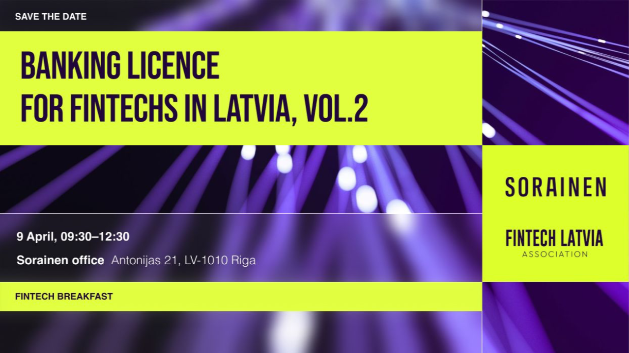 9. aprīlī Sorainen kopā ar Fintech Latvia Asociāciju aicina uz Fintech brokastīm – Bankas licence fintech uzņēmumiem Latvijā.