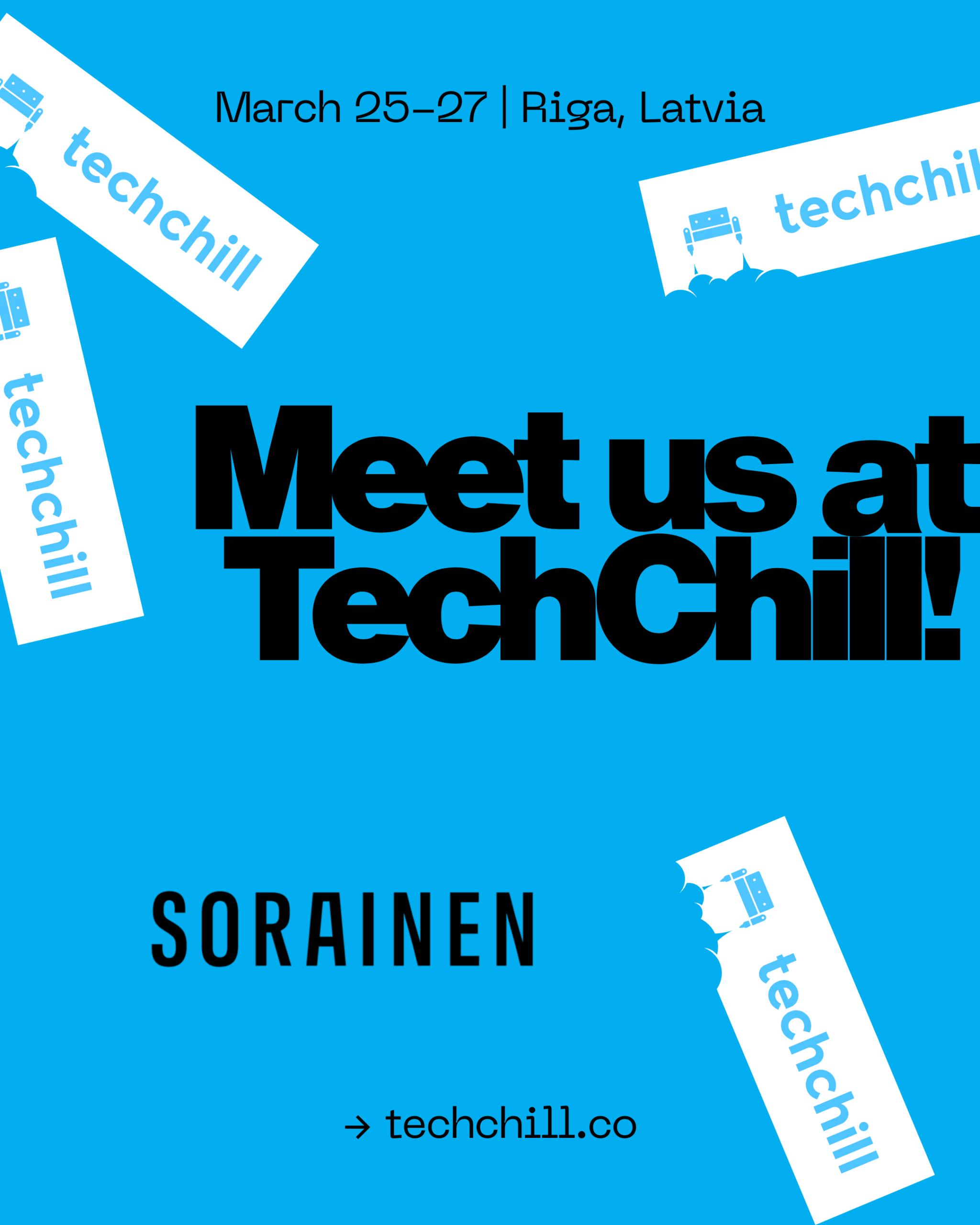 TechChill ir vadošais jaunuzņēmumu un tehnoloģiju pasākums Baltijā, kas pulcē uzņēmumu dibinātājus, investorus un nozares dalībniekus no visa reģiona un arī ārpus tā. TechChill 2026 ietvaros Sorainen piedāvās praktisku juridisko atbalstu jaunuzņēmumiem, interaktīvu intelektuālā īpašuma (IP) spēli un piedalīsies uz galvenās skatuves programmā.