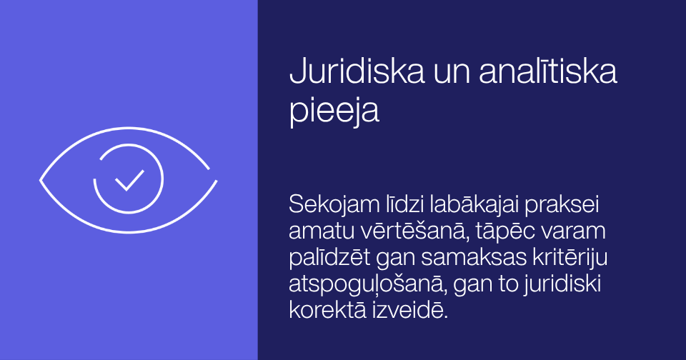 Mūsu mērķis ir palīdzēt izveidot viegli lietojamu, caurskatāmu un objektīvu amata vērtības noteikšanas sistēmu, kas balstīta normatīvajos aktos noteiktos kritērijos.