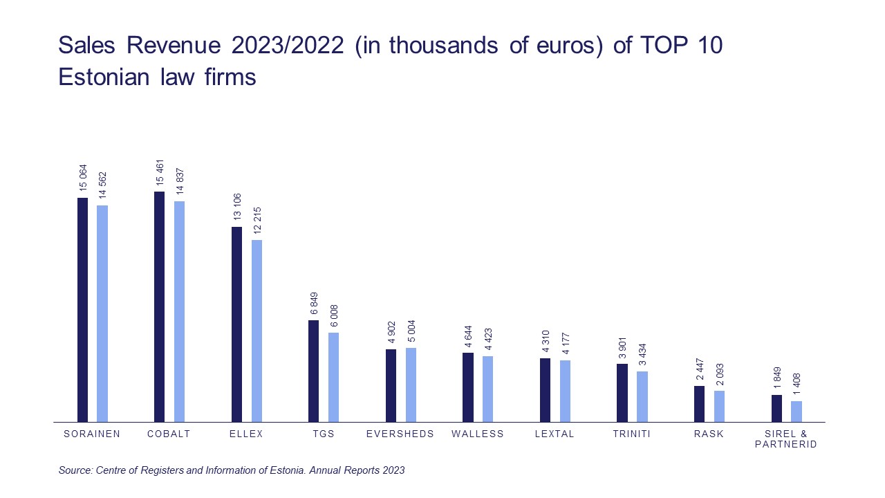 Sales revenue of TOP 10 law firms in Estonia in 2023