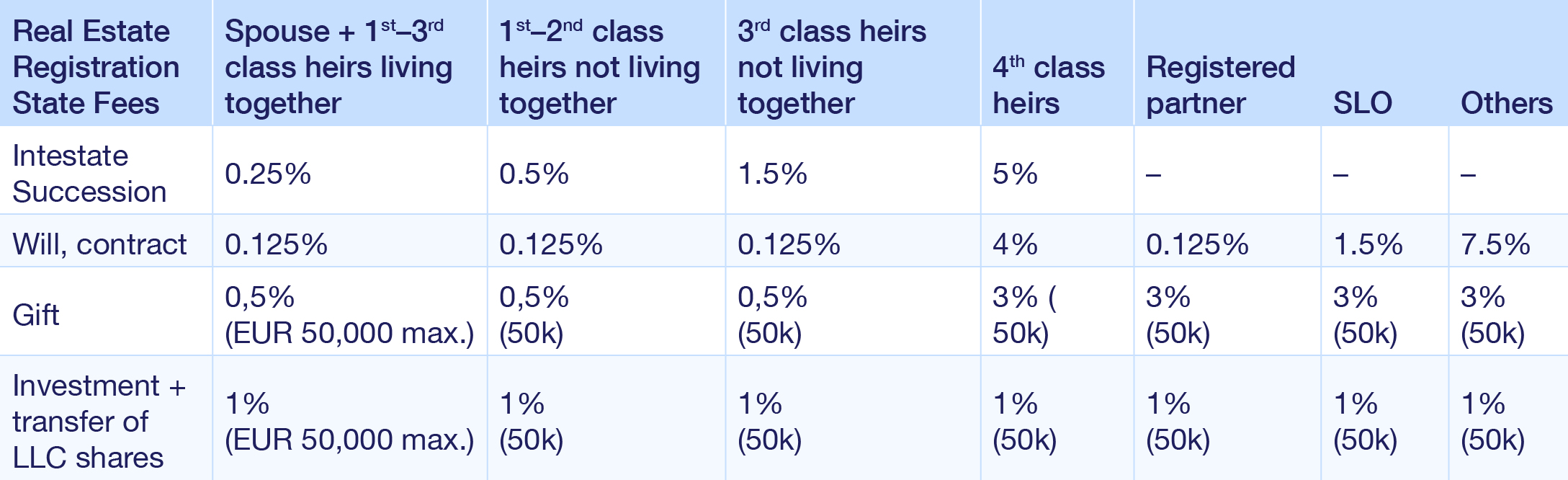For this purpose, another table is needed. Here we see that transferring real estate to heirs by will or contract could have the lowest state fees for registering the property in the land register.