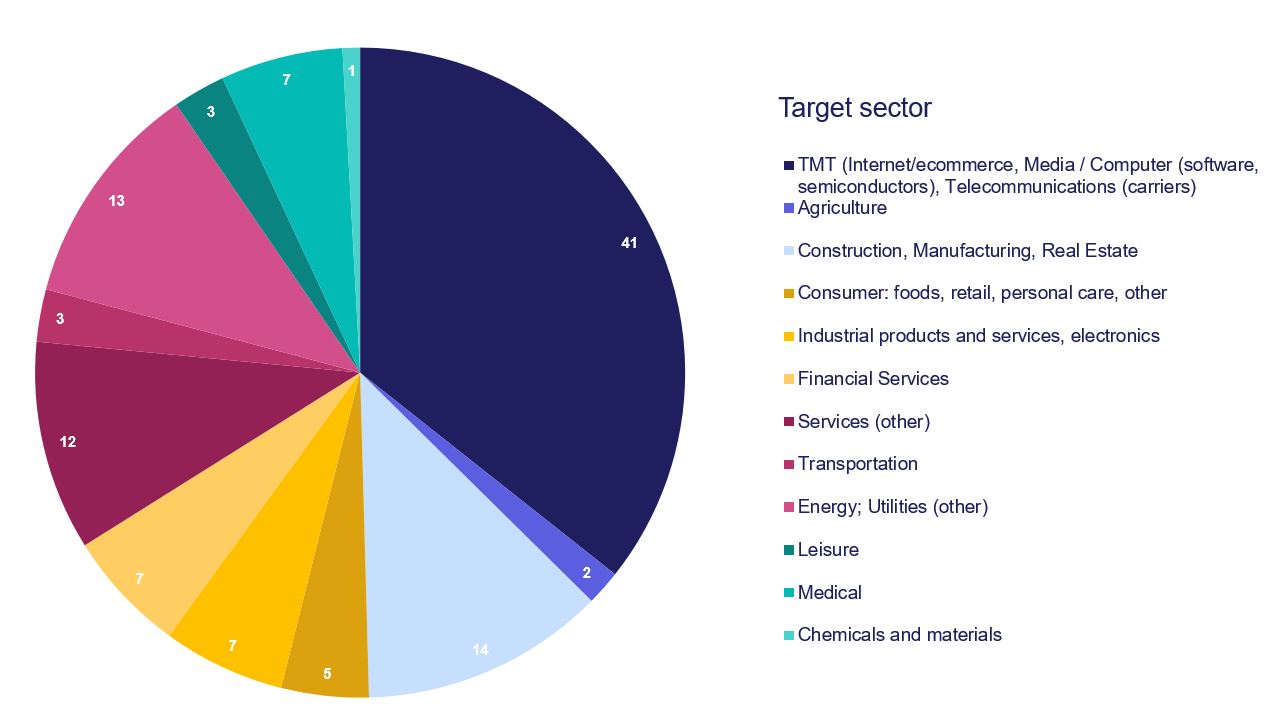 The TMT sector continues to drive the M&A market with its active search for investors. Also high in deal activity in 2021 were the real estate and construction, services, and energy and utilities sectors.